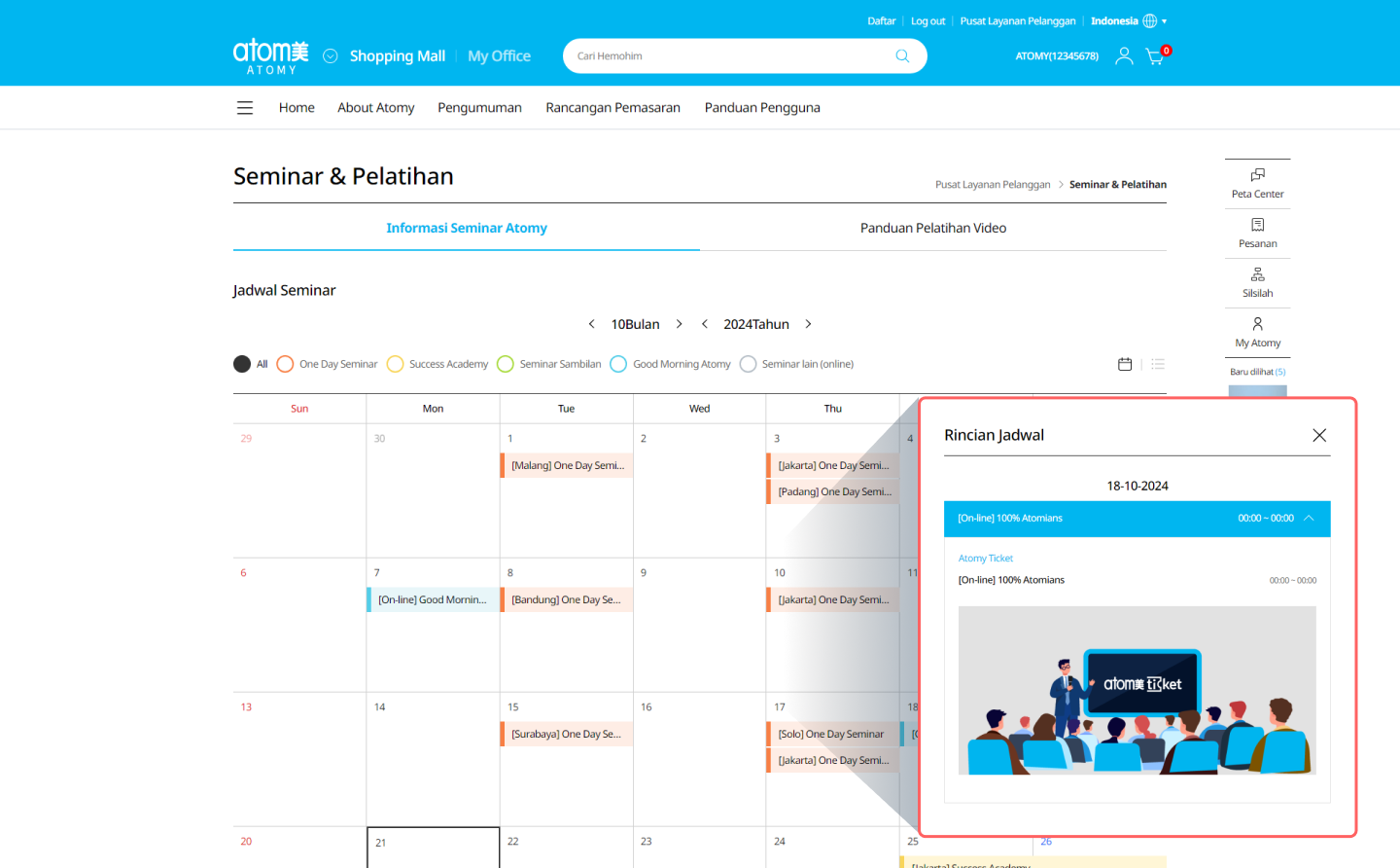 Anda dapat memeriksa cara berpartisipasi dalam seminar dan sesi pelatihan yang diselenggarakan oleh Atomy, serta jadwalnya.