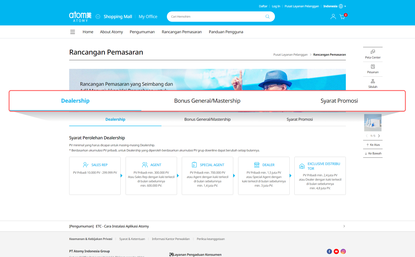 Anda dapat memeriksa penjelasan rinci tentang syarat tingkat keanggotaan Atomy, Bonus General/Mastership, promosi, dan lainnya.
