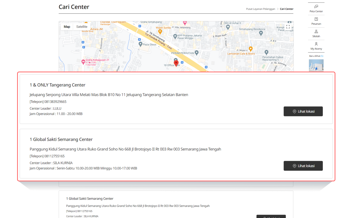 Anda dapat memeriksa lokasi dan informasi kontak kantor pusat dan pusat Atomy.